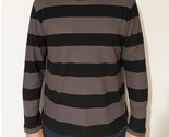 Stylish black and gray striped long sleeve shirt. Perfect for casual wear.
