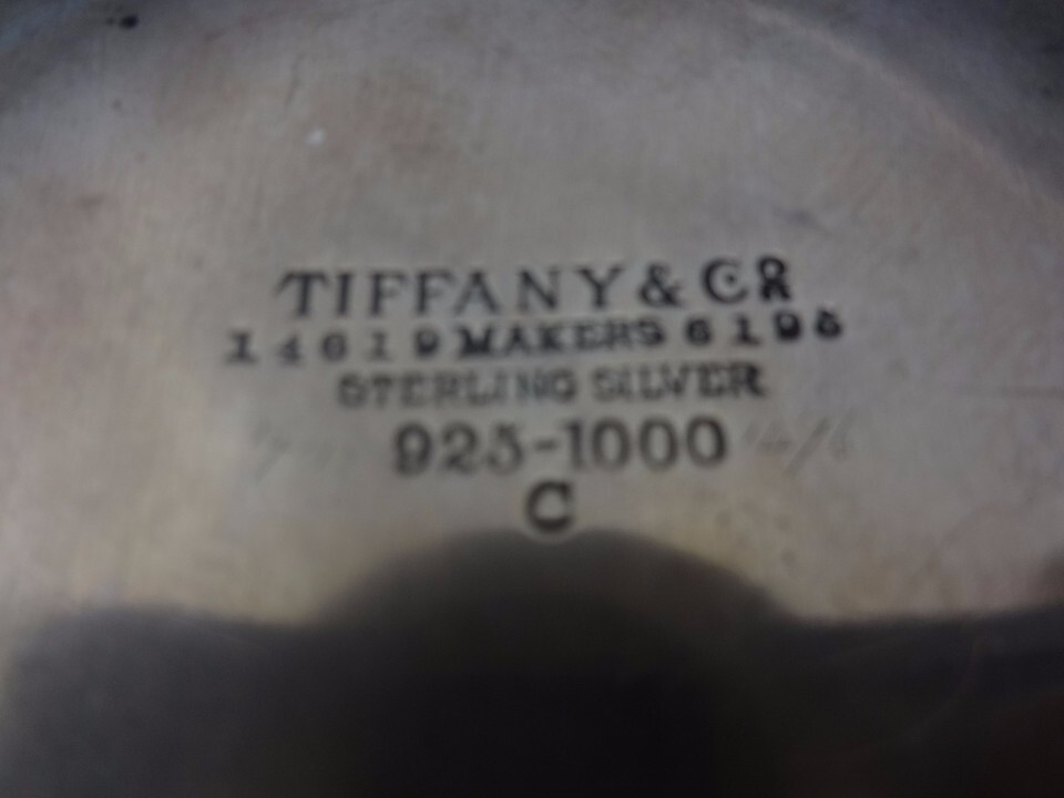 has a repoussed leaf design. It's marked with a "C" date and #14619/6195.