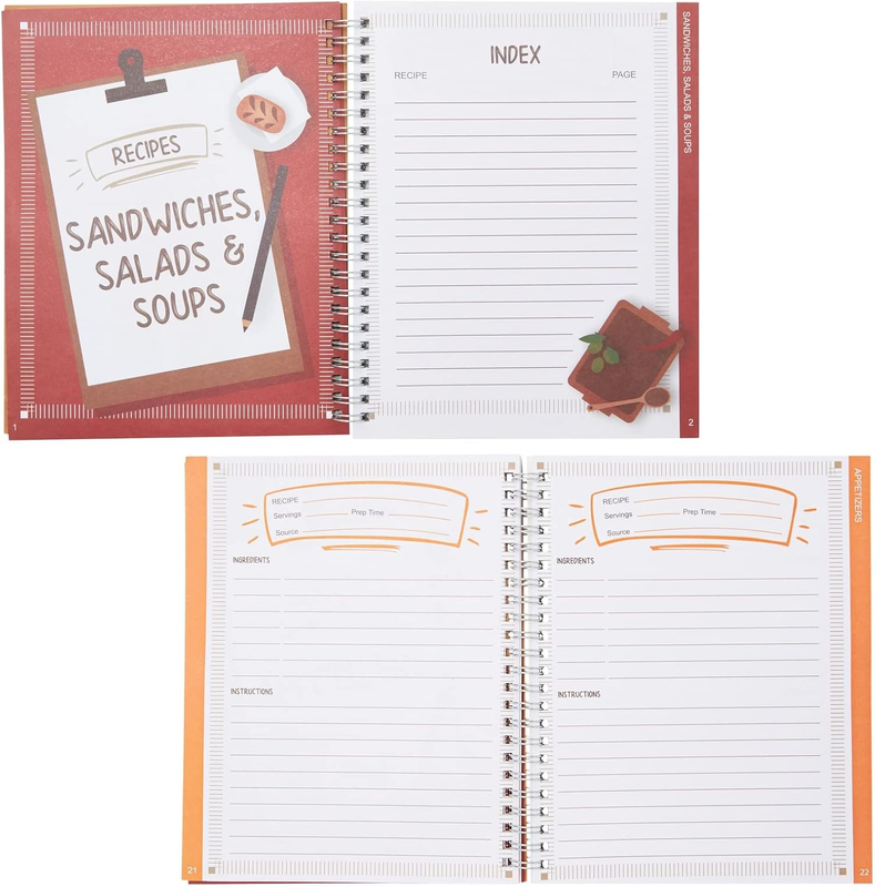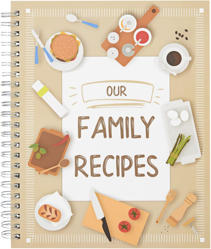 Durable and Convenient: Constructed with a 300gsm cardstock cover and matte lamination, this cookbook you can write in, ensures longevity. The cookbook binder offers a spiral-bound format that allows easy access to pages, making it an ideal blank recipe notebook to write in your own recipes