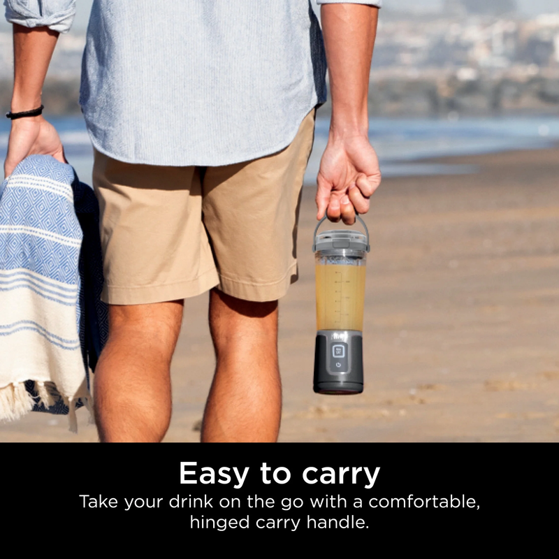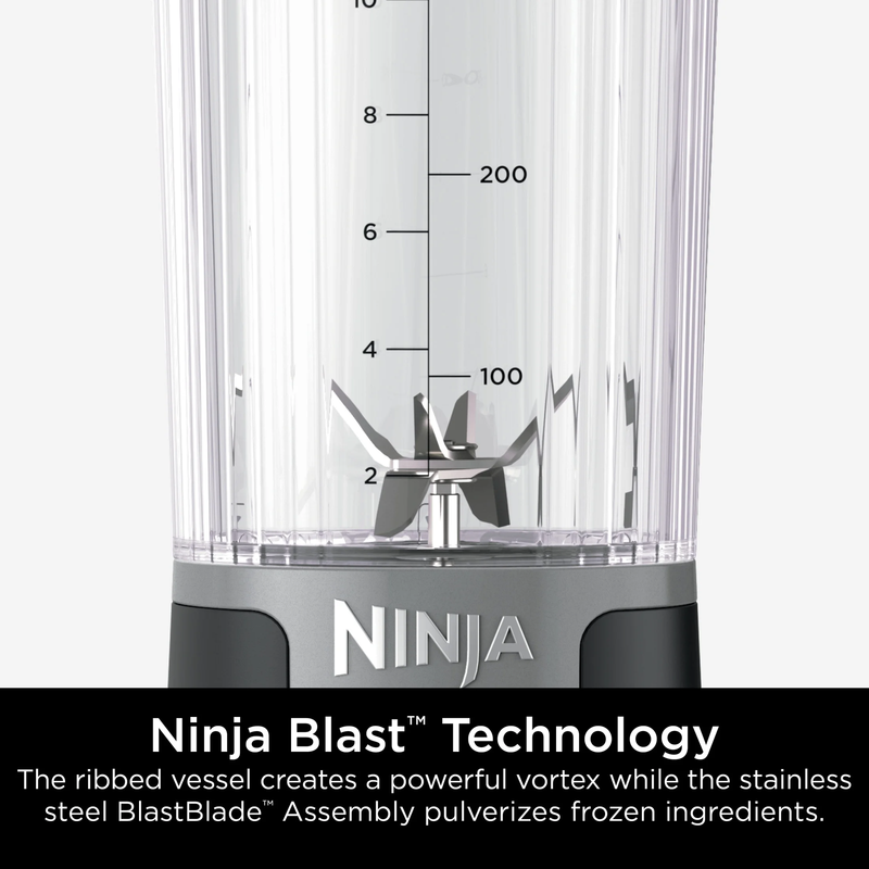 The Ninja Blast, BC100BK Portable Blender brings high speed Ninja blending power on the go with a cordless, hand held design. The 16oz. vessel is perfect for smoothies, protein shakes, and frozen drinks. Blast through frozen ingredients with Ninja?s BlastBlade Assembly. Ninja Blast is rechargeable via USB-C. One handed, easy open sip lid and carrying handle make drinking on the go easier than ever.