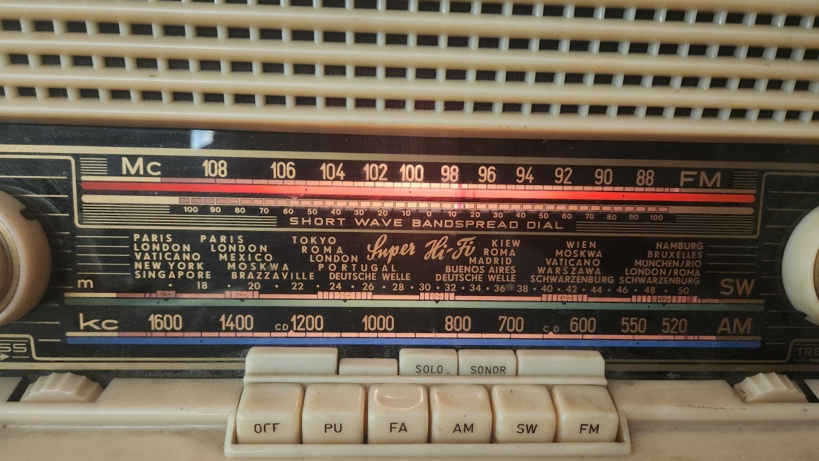 **** Some scratches and blemishes as seen in pictures. Radio dial lights up. Dials and knobs all turn as expected. No Sound comes from the speaker. Sold As-Is/Parts Only. No Guarantee of functionality. May be an easy fix or a difficult fix, I just don't know. ****
