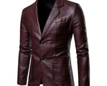 - Blazer borgoña de dos botones hecho a mano para hombre de cuero genuino de pi...