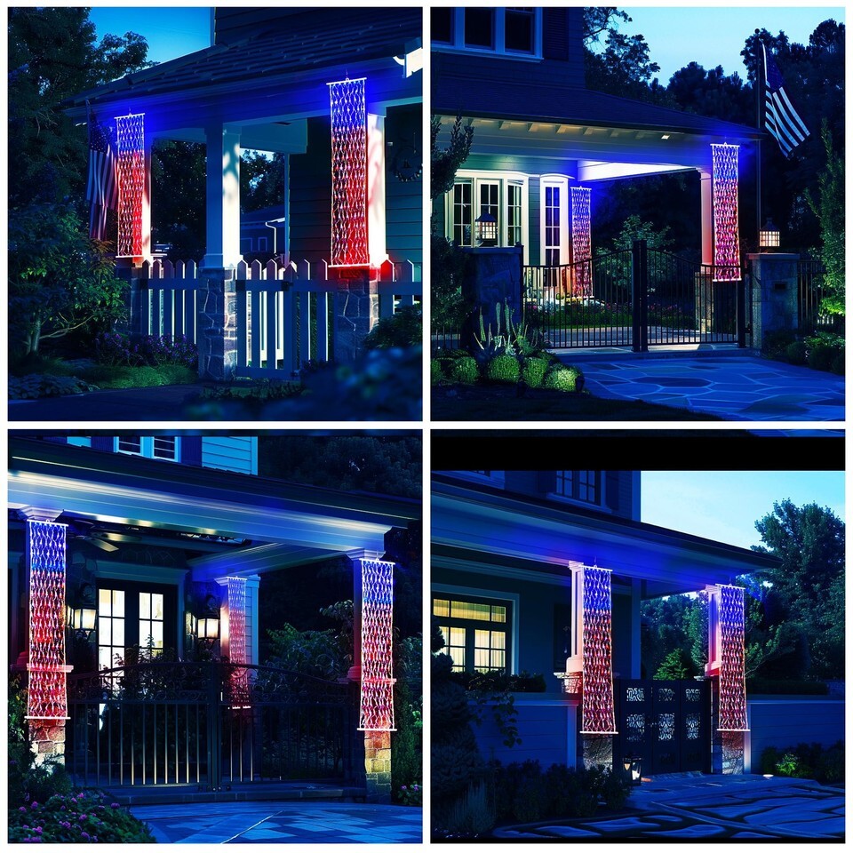 Patriotic Brilliance: Proudly display Old Glory with two full-size LED flag banners, perfect for framing your doorway, porch, or fence.