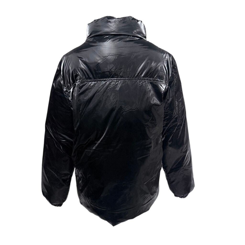 Bleeker & Mercer Liquid Coated Black Puffer Coat Glossy Streetwear Winter Coat M