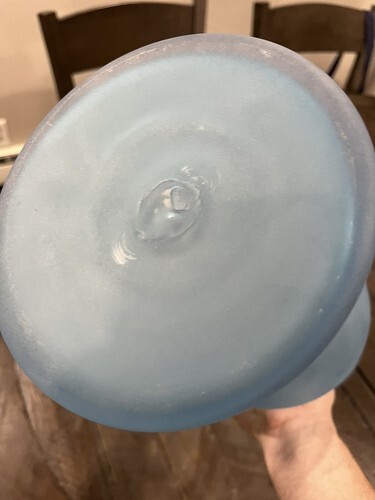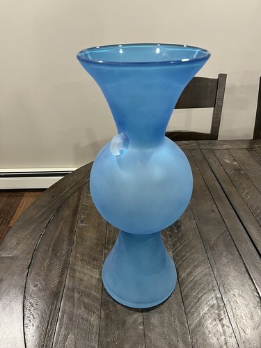 - Blenko Glass Victorian Frosted Azure Large Vase #1407 17.5”