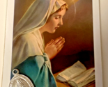 Keep this beautiful image + medal as constant to pray to Our Blessed Mother, so she can intercede for us.