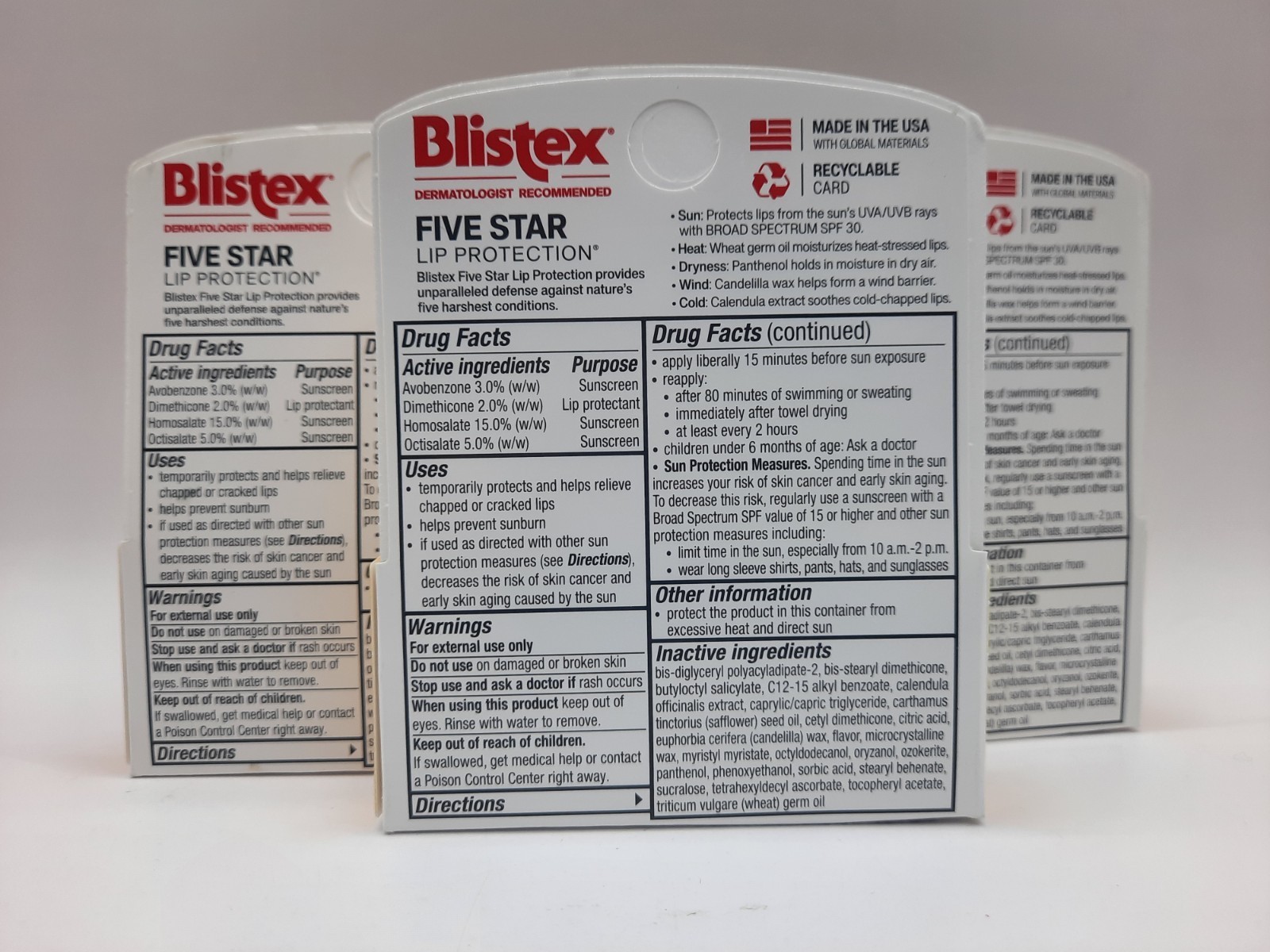 - Blistex Five Star Lip Protection SPF 30 .15oz/4.25g Three 2 Pck (6 Stks) E: 5/26