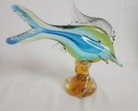 - Blown Style Glass Art Vtg Fish Figurine Green Blue Ocean Hand Crafted 10.5"