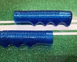These 7/8" muscle bike banana seat grips are designed to fit most muscle bikes. A nostalgic and vintage addition to any collector's bicycle accessories collection. The bright blue color adds a pop of fun and retro flair to any bike, making them a unique and sought-after piece for bike enthusiasts and collectors alike.
