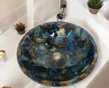 - Blue Agate & Gold Resin Bathroom Sink | Luxury Gemstone Vessel Basin | Handmade