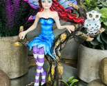 Ebros Blue Avatar Butterfly Fairy With Snow Owl Sitting On Magic Forest Tree Figurine