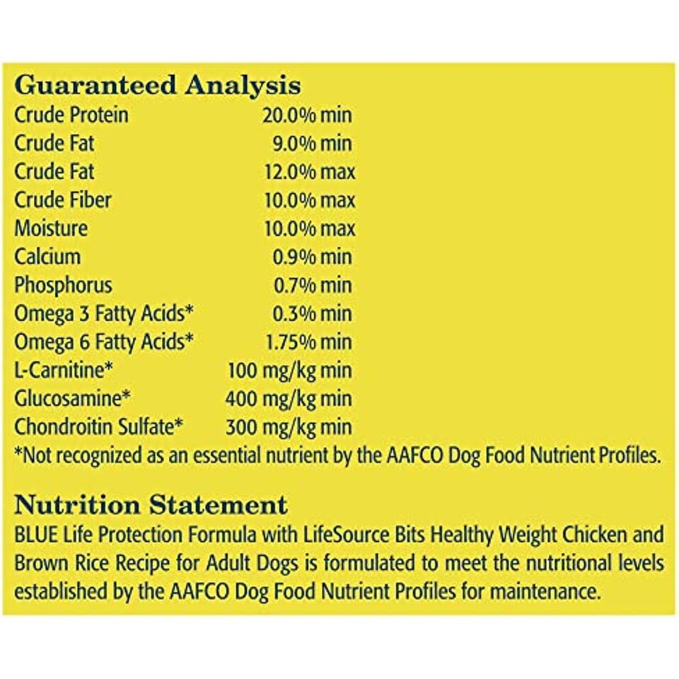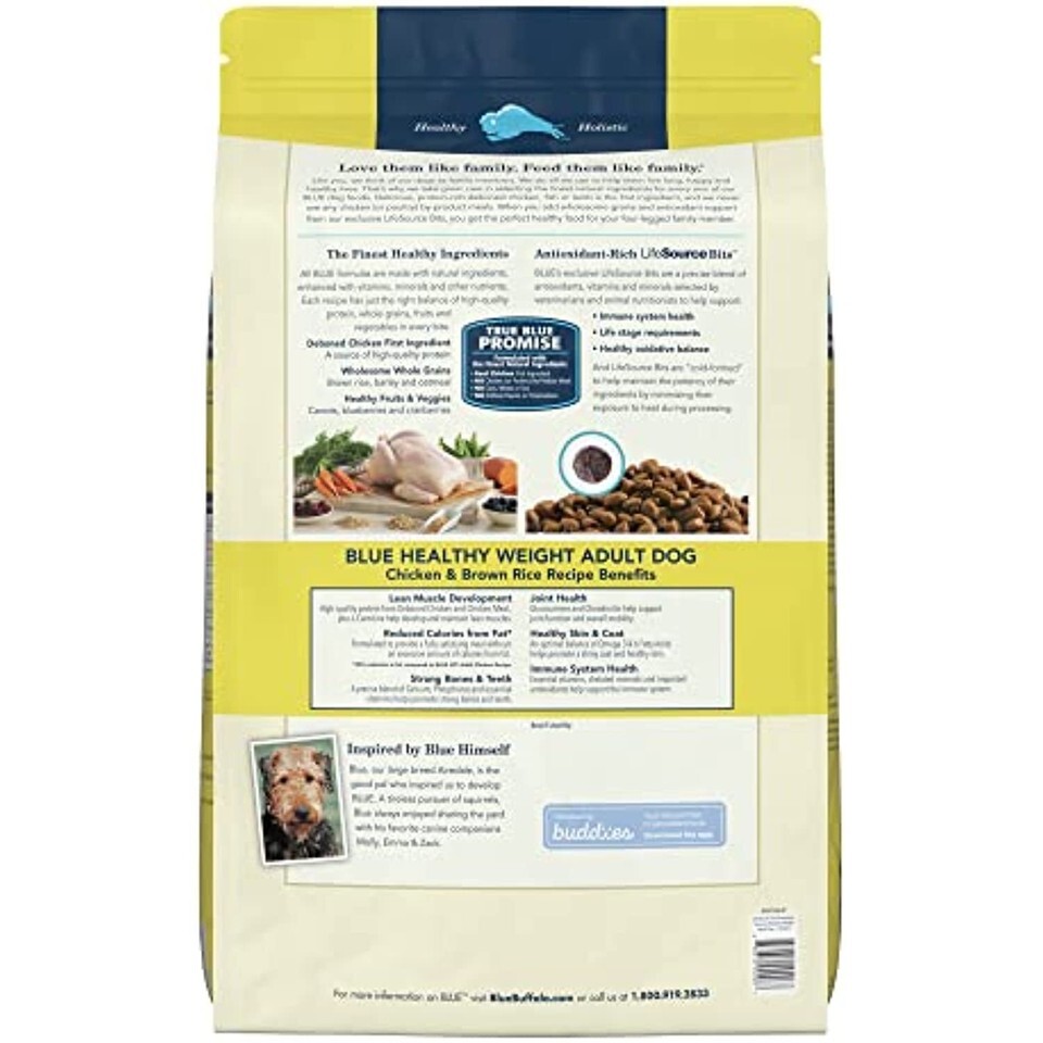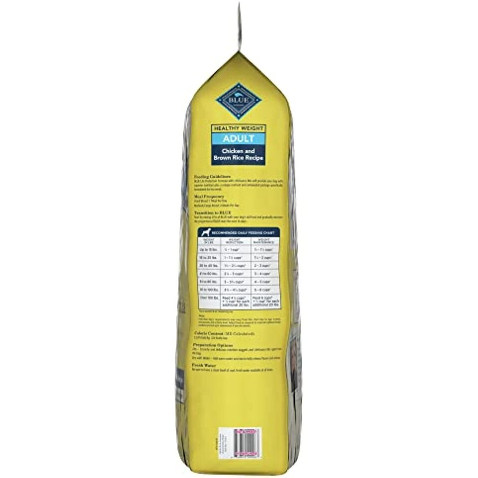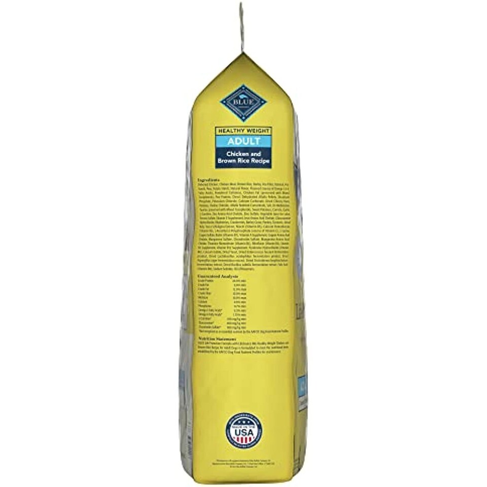 Contains one (1) 30 lb. Bag of BLUE Life Protection Formula Healthy Weight Adult Dry Dog Food, Chicken and Brown Rice