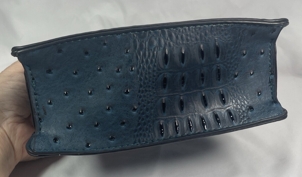 - Blue Croc Texture Hand Bag Vegan Leather Small Crossbody Purse Clutch