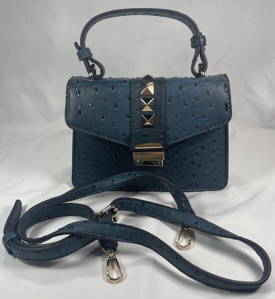 Blue Croc Texture Hand Bag Vegan Leather Small Crossbody Purse Clutch
