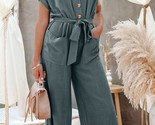 Gray Button Long Sleeve Wide Leg Jumpsuit