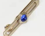 Blue Dome Tie Clip Bar Nu-lok Gold Tone Vintage Men's Jewelry 2.4" L x .5" W