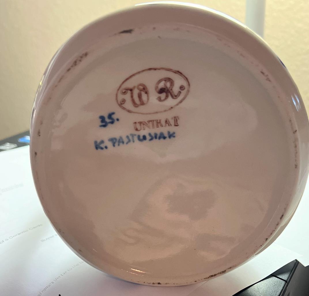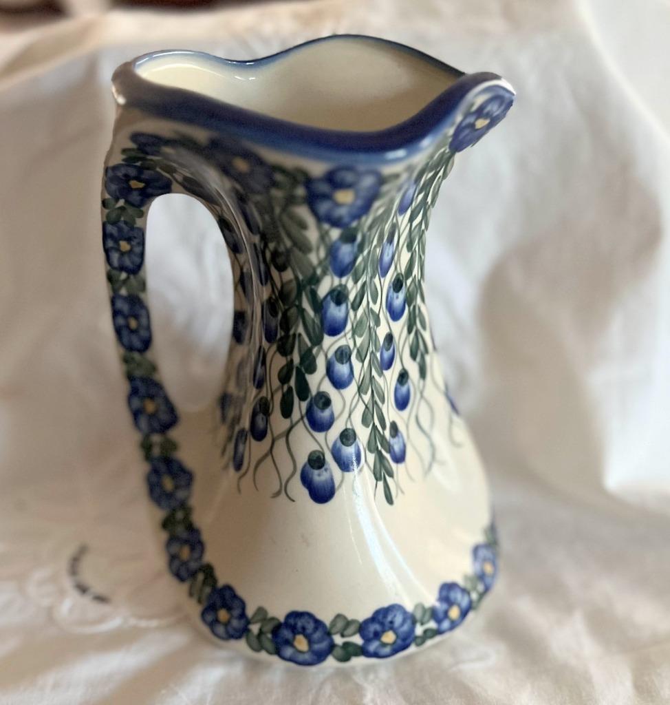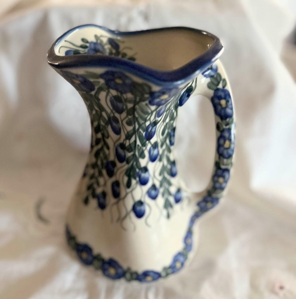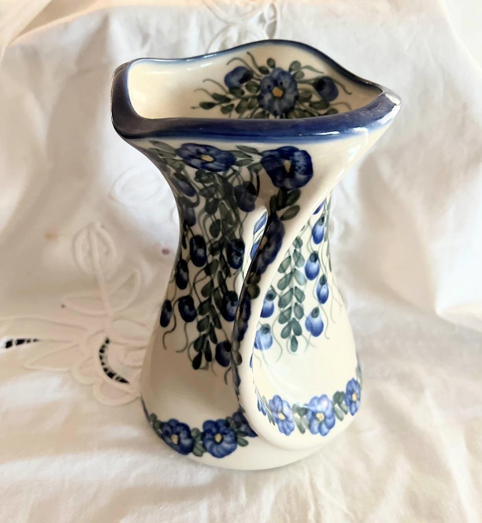 - Blue Floral Ceramic Vase Boleslaweic Unikat Polish Pottery Artist Signed