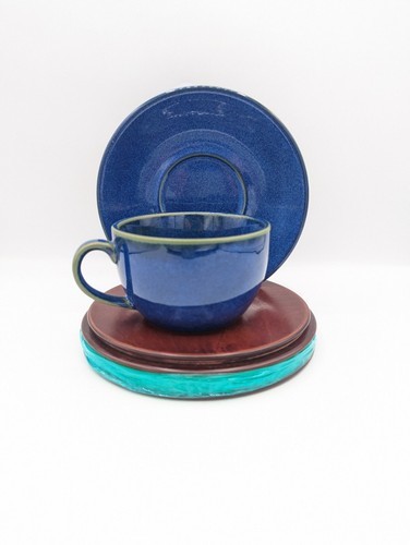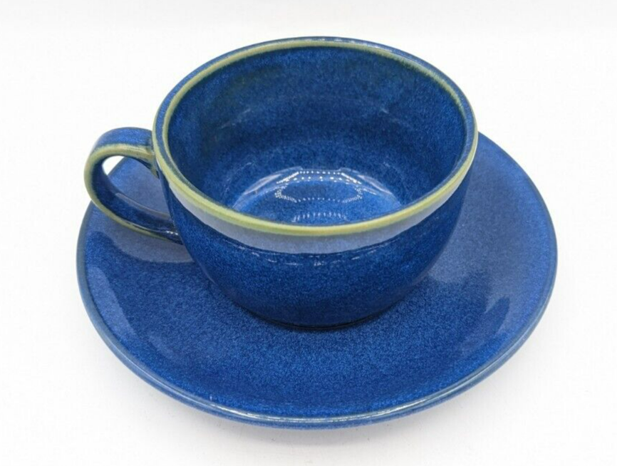 Nice Heavy Blue Green Ceramic Cappuccino Mug Saucer