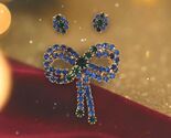 - Blue Green Rhinestone Bow & Clip Earrings Vintage Demi-Parure Set