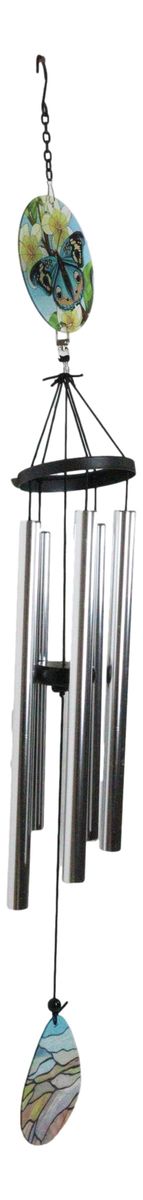 - Blue Monarch Butterfly Colorful Art Glass Hanging Wind Chime With Metal Rods