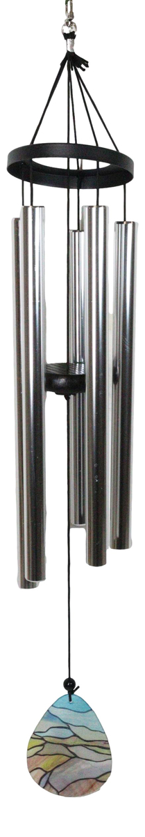 ? This Colorful Art Glass Wind Chime is made of glass and steel metal rods.