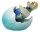 Blue Nautical Marine Sea Turtle Hatchling Emerging Out of Egg Mini Figurine