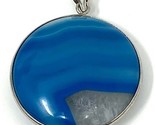 - Blue Quartz and Silver Round Disc Pendant, 1.5"