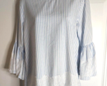 - Blue Rain Blue White Striped Lace Trim Boho Bell Sleeve Tunic Top Blouse Size S