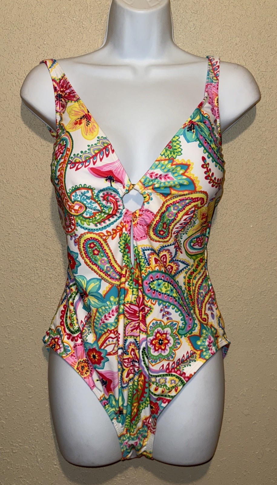 Blue Rod Beattie One piece multicolor swimsuit size 12 NEW
