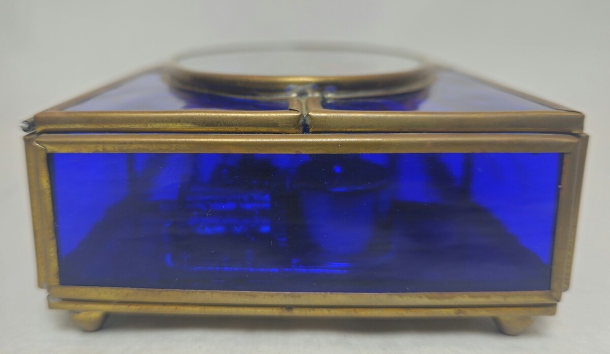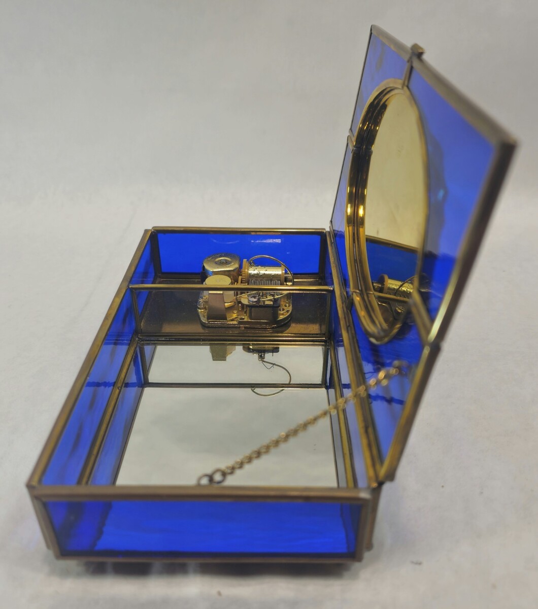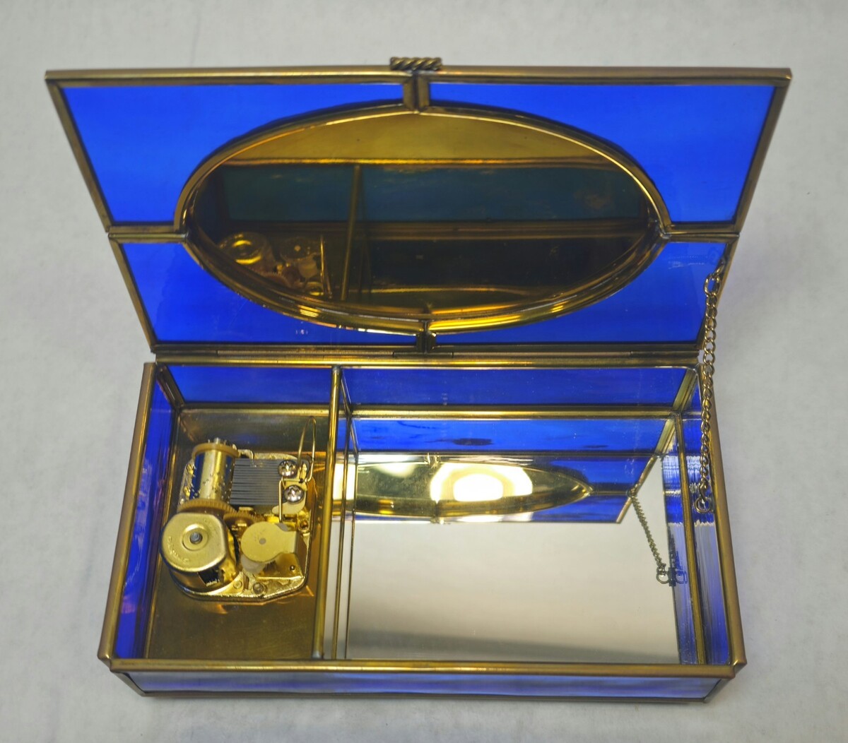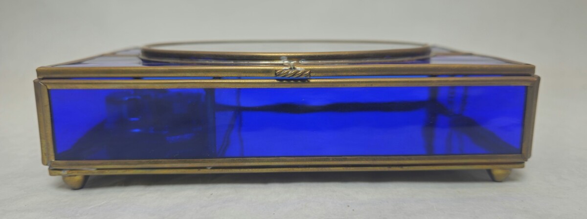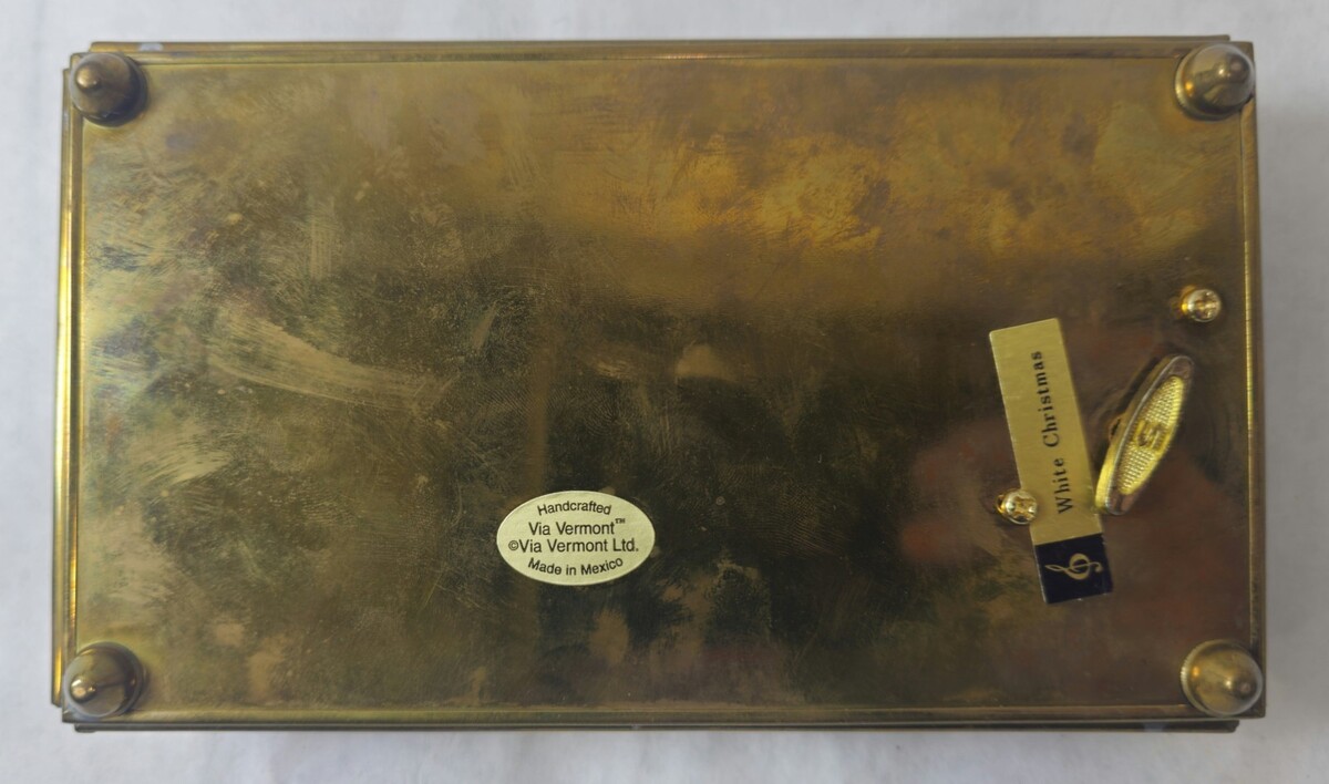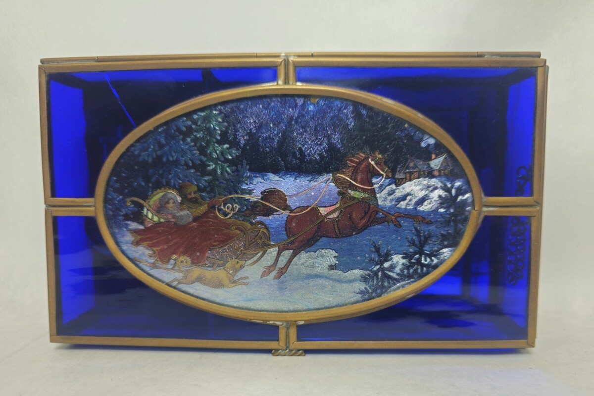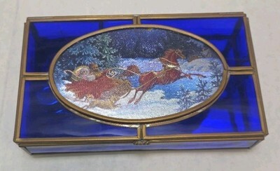 Blue Stained Glass Music Box White Christmas LYNN BYWATERS Via Vermont 1993