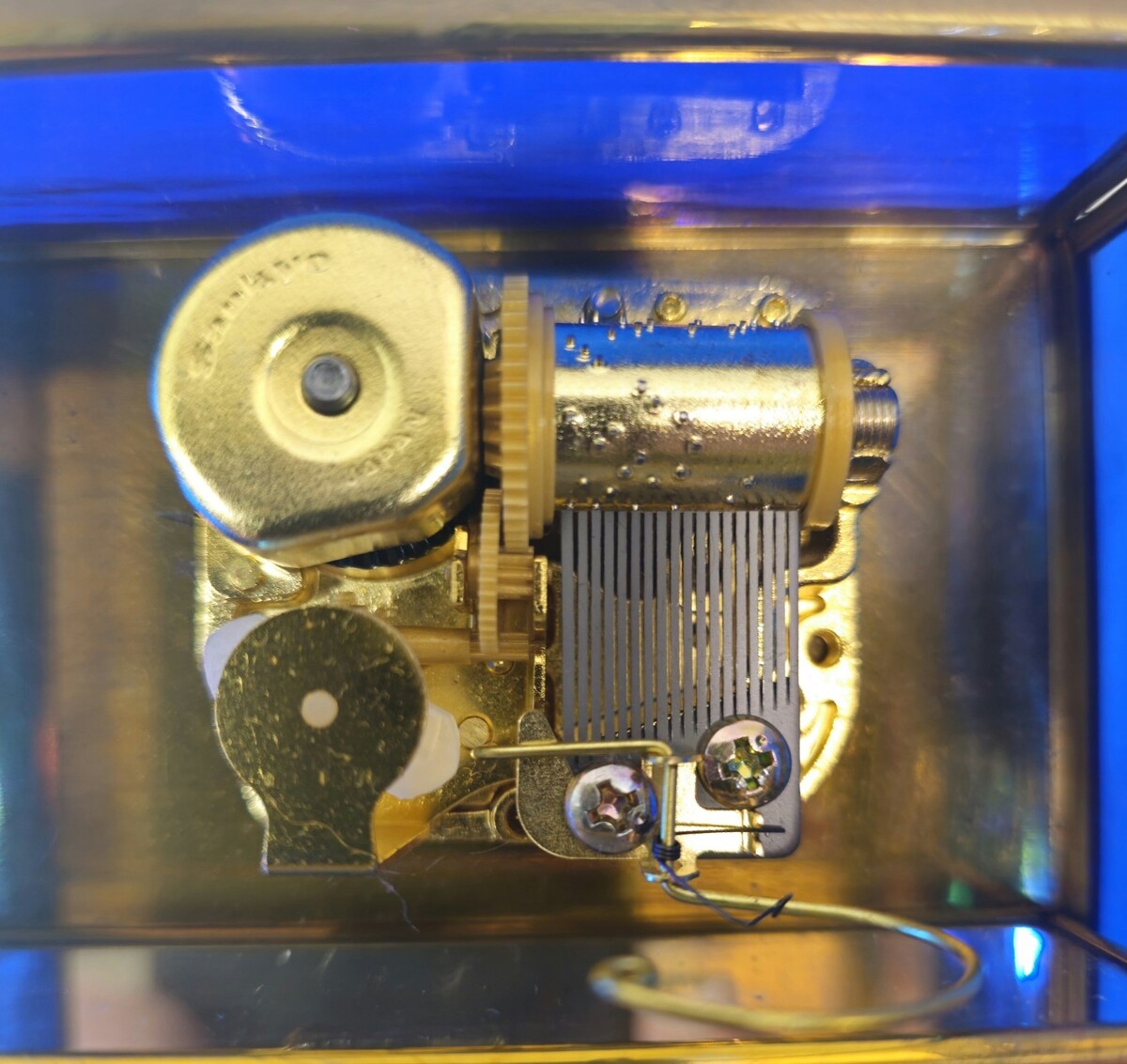 - Blue Stained Glass Music Box White Christmas LYNN BYWATERS Via Vermont 1993