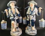 - Blue and White Chinese Porcelain Old Fishing Couple, 13" W Baskets Fish Pole OBO