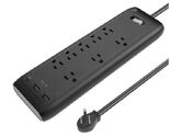 BlueDiamond 8-Outlet Surge Protector + 3 USB Charging Ports (1x USB-C + 2 USB-A) - 2160J - 8 Ft. Power Cord - Black