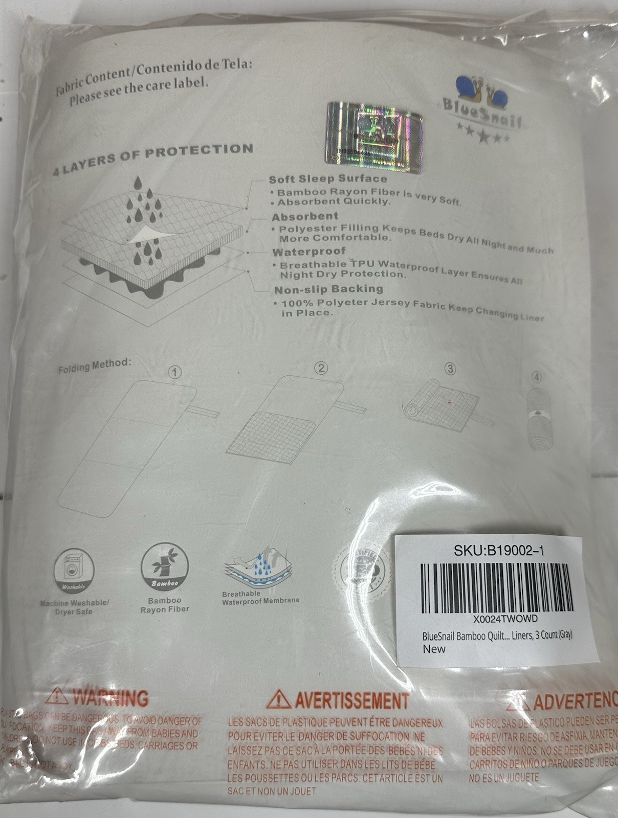 - BlueSnail Bamboo Waterproof Quilted Baby Changing Pad Liners Set of 2 Gray