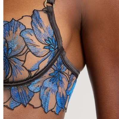 - Bluebella Lyandra Underwire Embroidered Lace Mesh Bra, Blue/Black, 32DD, NWT