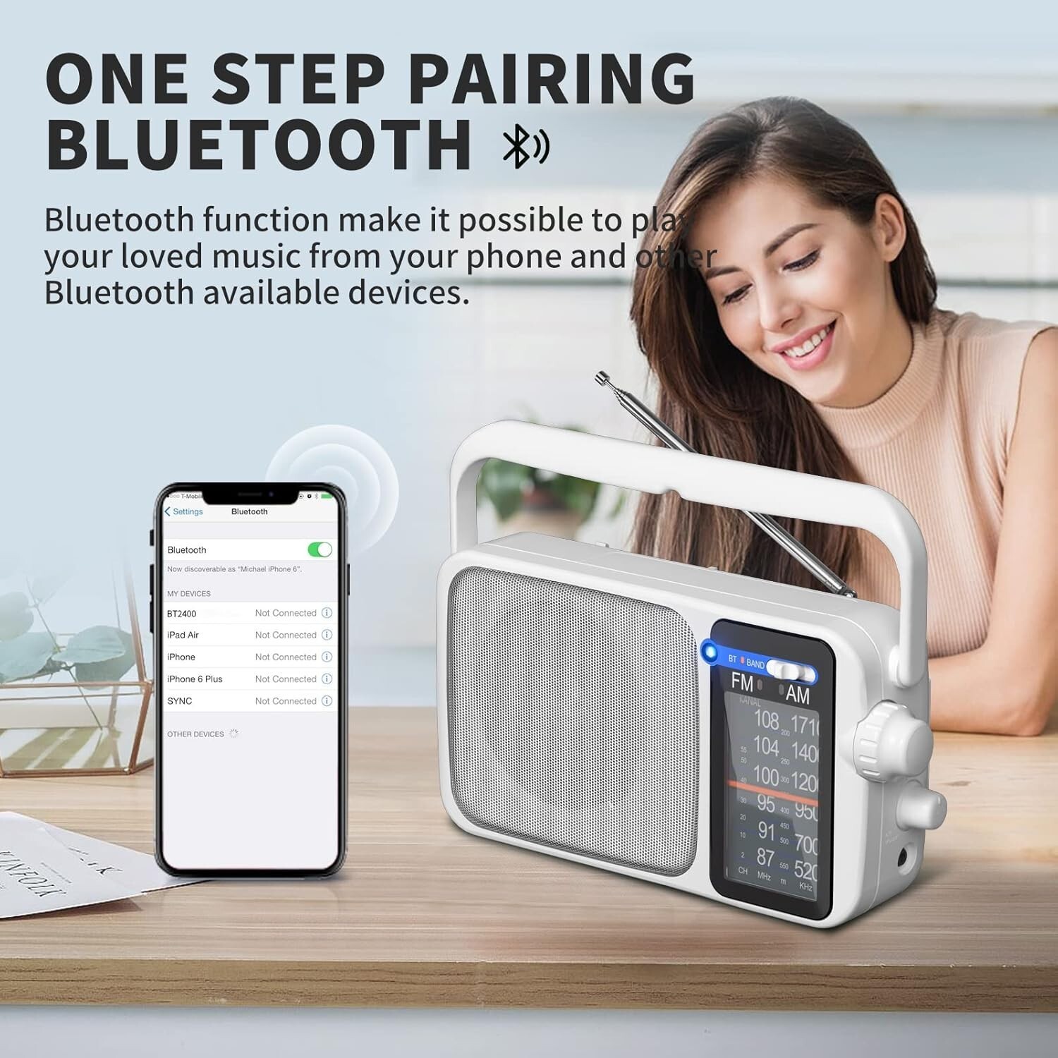 - Bluetooth Portable AM/FM Radio with Large Dial & Headphone Jack - Perfect Gift