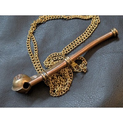 Discover this striking vintage brass whistle, a piece that echoes the allure of the sea. Its polished brass body gleams, adorned with a classic anchor emblem that speaks of maritime heritage. The accompanying sturdy brass chain adds a touch of authentic nautical charm, perfect for display or as a unique conversation starter. Imagine this piece gracing a collector's shelf, adding a touch of seafaring history to your home, or as a distinctive accent for a themed event.