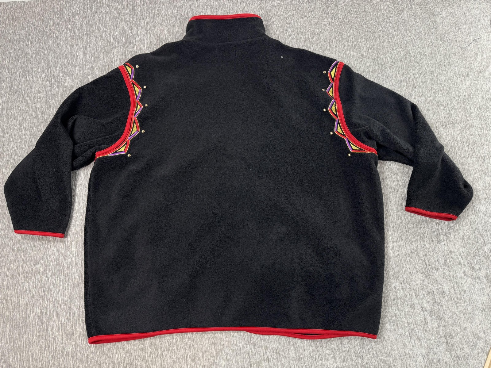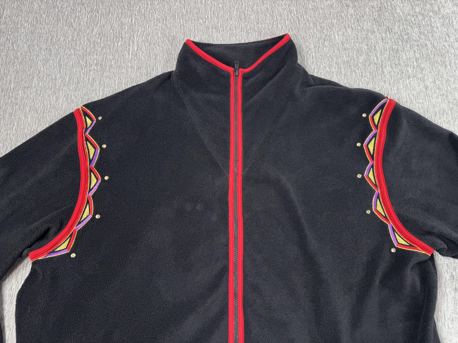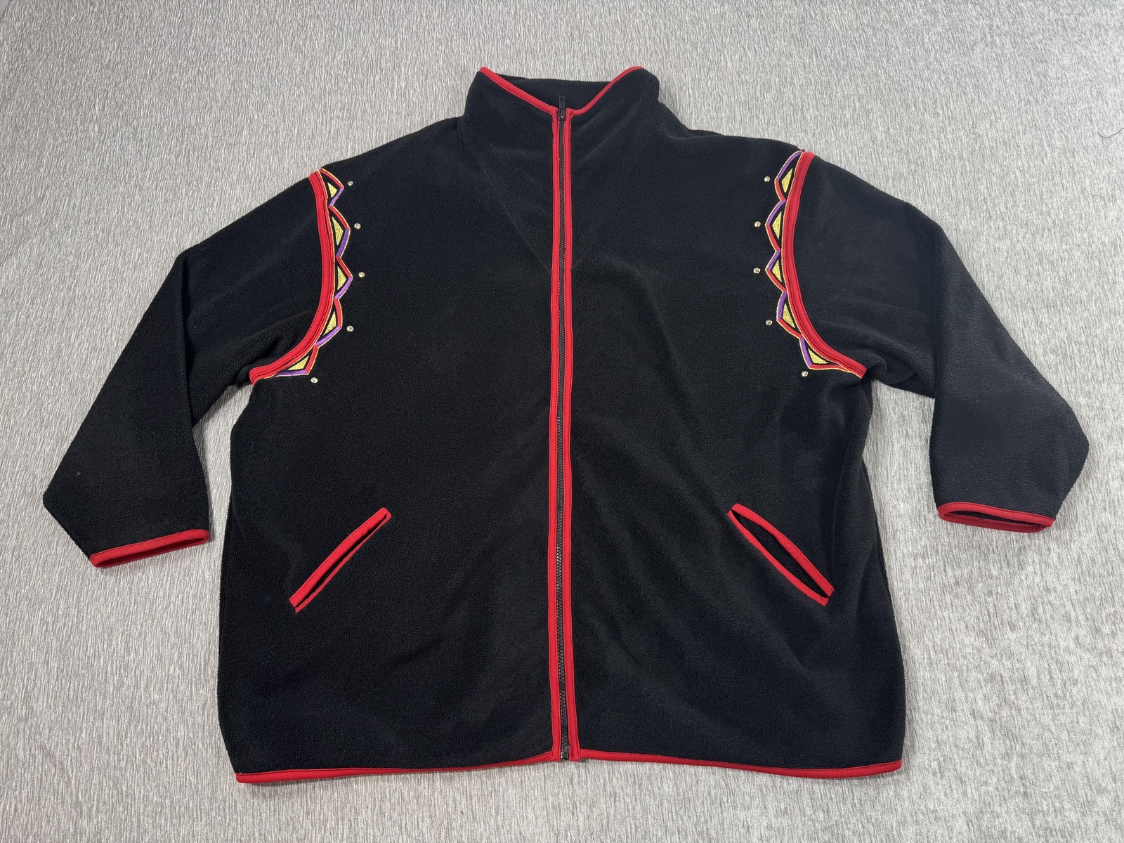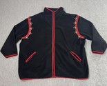 - Bob Mackie Wearable Art Jacket Womens 3X Black Fleece Zip Embroidered Red Trim