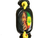 BOB MARLEY POT LEAF PHOTO PICTURE ACRYLIC MEDALION BLACK LEATHER ADJ BRACELET