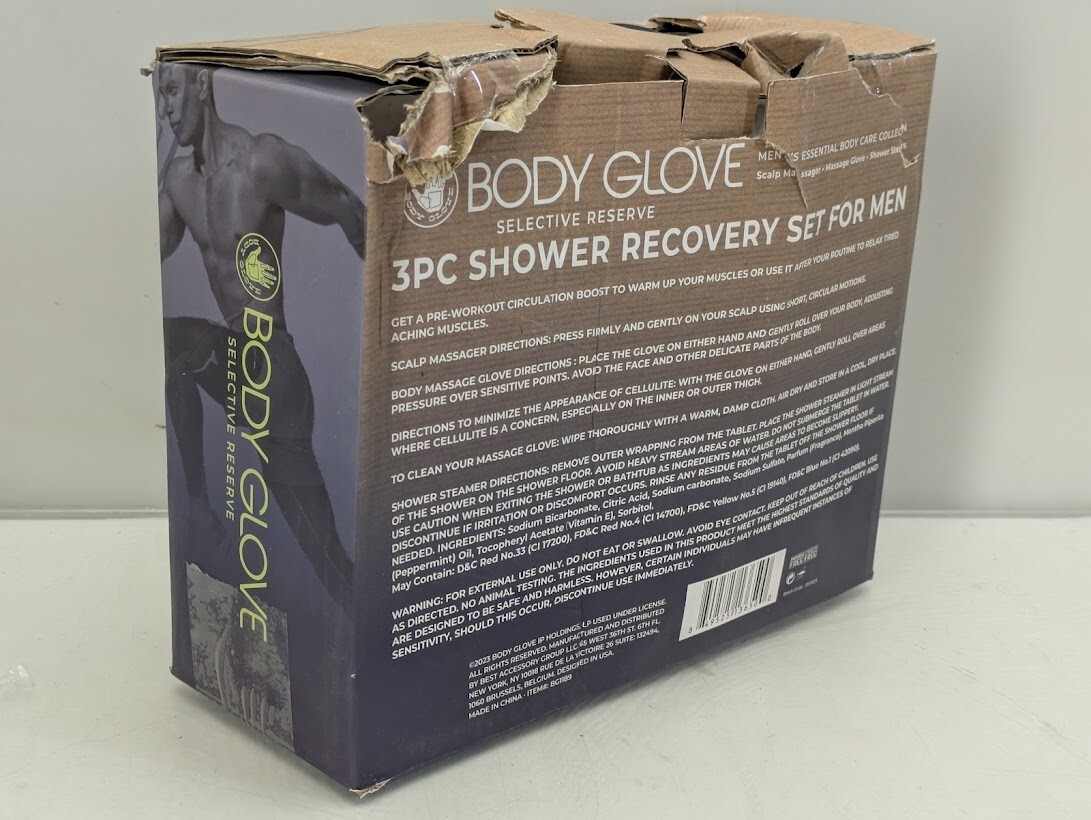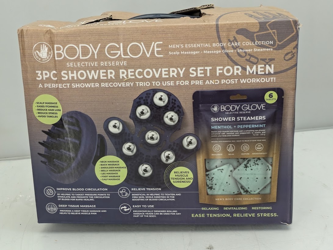 - Body Glove 3 PC Shower Set Scalp Massager, Massage Glove, Shower Steamers Set