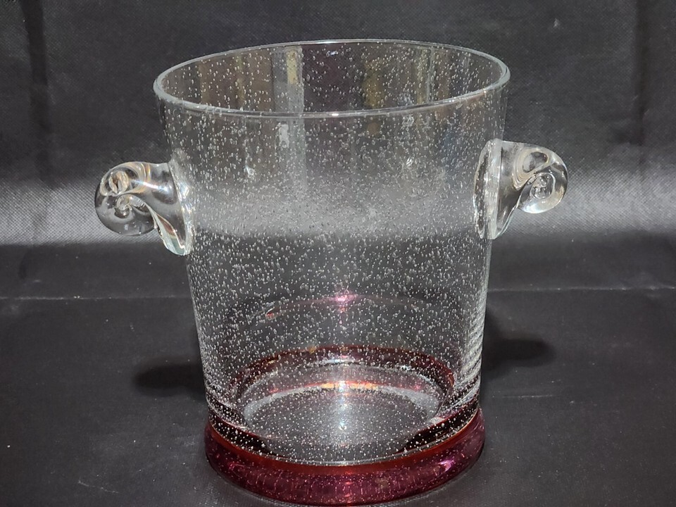 - Bohemia Style Crystal Ice Bucket Applied Blob Handles, Fine Bubble, Ruby Flash