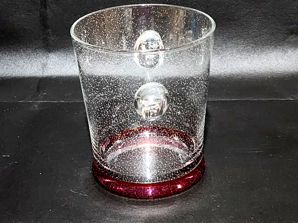 Bohemia Style Crystal Ice Bucket Applied Blob Handles, Fine Bubble, Ruby Flash
