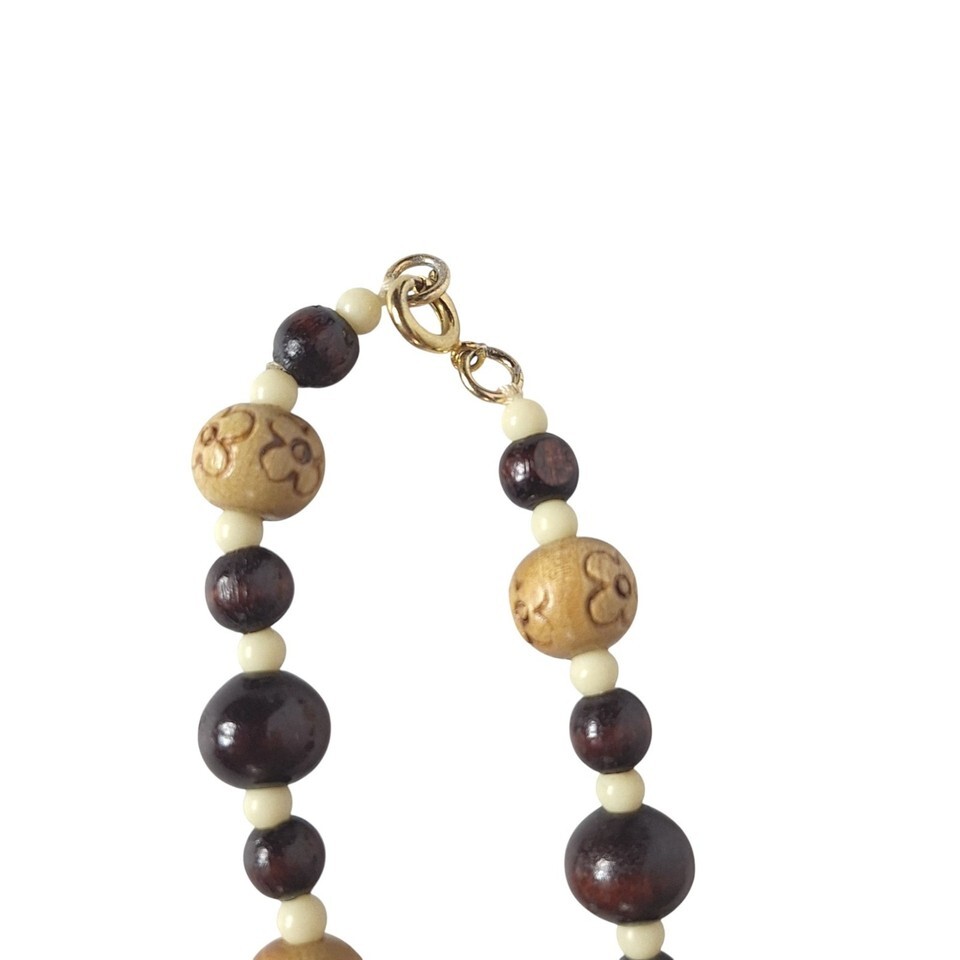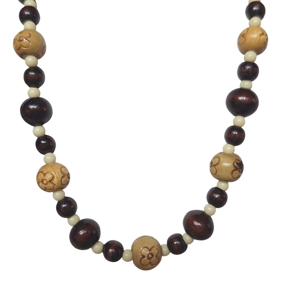 - Boho Carved Bead Choker Necklace Tribal Floral Wood Beads Handmade Artisan