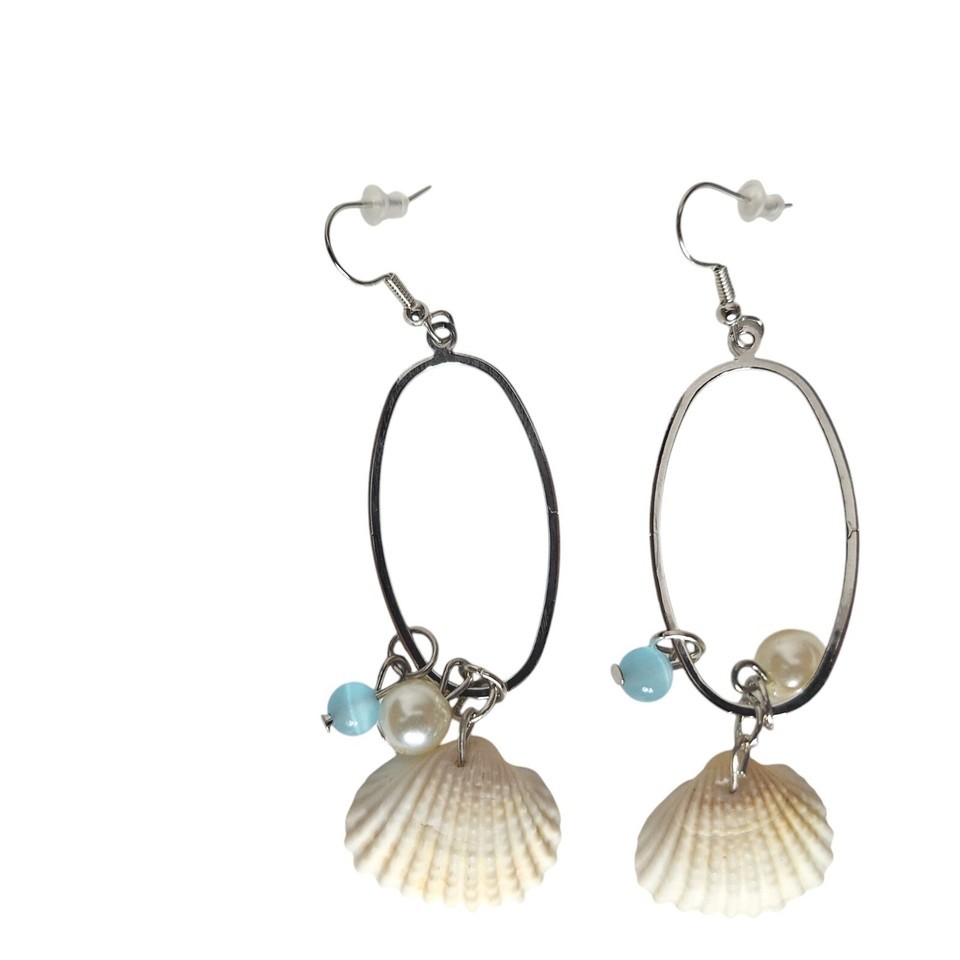 - Boho Dainty White Seashell Cat's Eye Stone Pearl Beachcore Earrings Jewelry