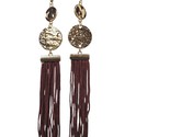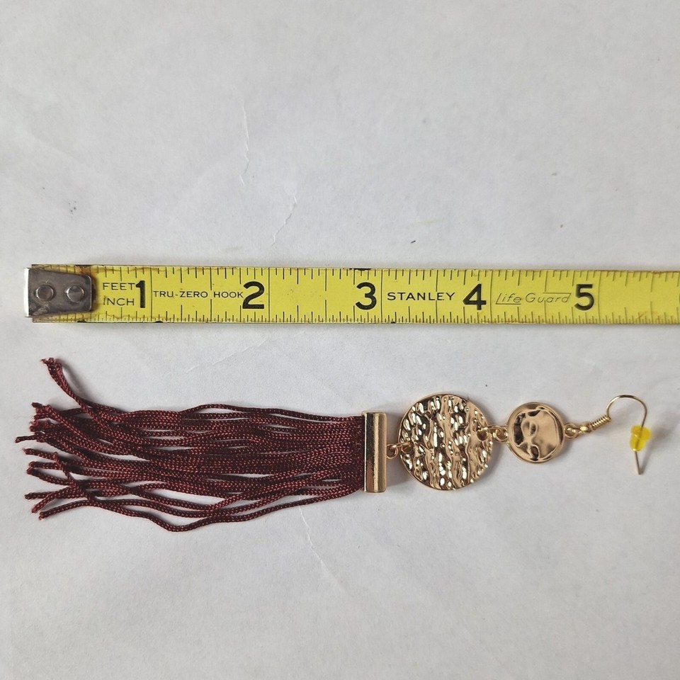 - Boho Gold Tone Hammered Discs Red Tasseled Fringe Earrings Costume Jewelry