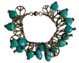 - Boho Peace Sign Charm Bracelet Silver Tone Faux Turquoise Hearts Dangle Hippie