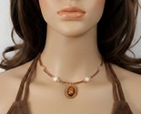- Boho Seed Bead Choker, Faux Banded Agate Pendant