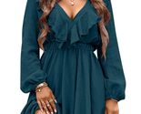 Elegant and Versatile - This tunic dress features a deep V-neck and puff sleeves that add an elegant touch to the textured fabric. The high waist and ruffle detailing give it a skater dress vibe.