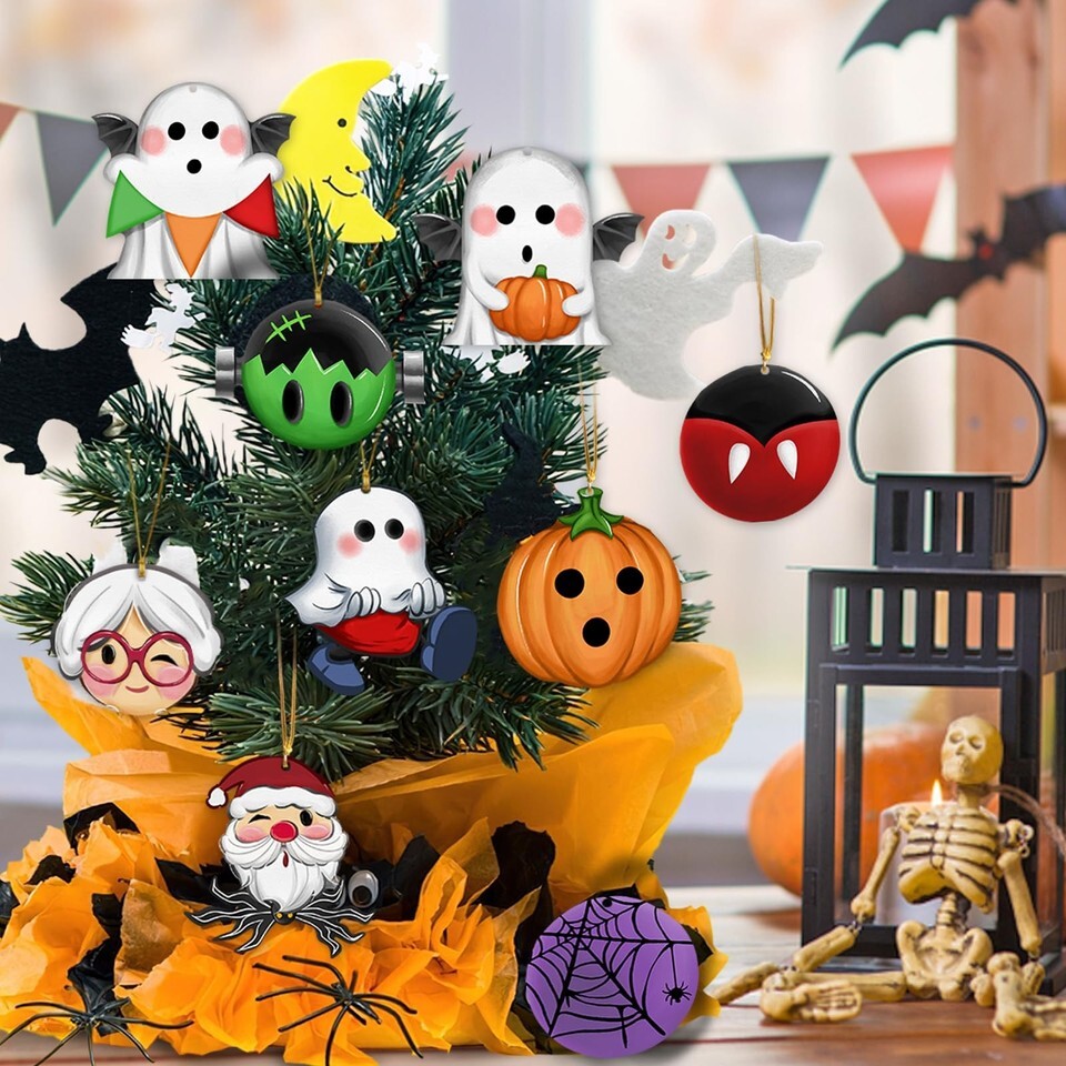 - Bolisom 36 Pc Halloween Christmas Tree Ornaments Ghost Pumpkin Gold Rope