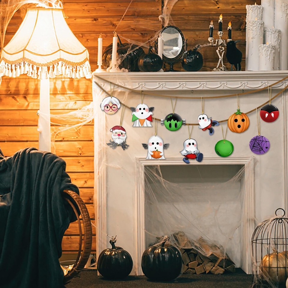 Bolisom 36 Pc Halloween Christmas Tree Ornaments Ghost Pumpkin Gold Rope